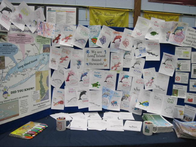 New York Sea Grant's Long Island Sound Study outreach Coordinator Larissa Graham had students make a "promise" to protect the Sound. As stewards, the students colored pictures of some of the more than 170 fish species and 1,200 invertebrate species common to Long Island Sound, including the American lobster, hermit crabs, the colorful scup (porgies) and diamondback terrapins (turtles).