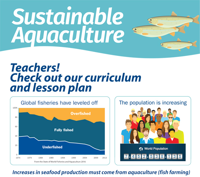 But the industry also needs trained professionals to operate those facilities and these lesson plans are designed to introduce students to a great career opportunity. Jobs will increase as the industry starts to expand—and the need for workers with a knowledge of aquaculture and seafood science will increase.