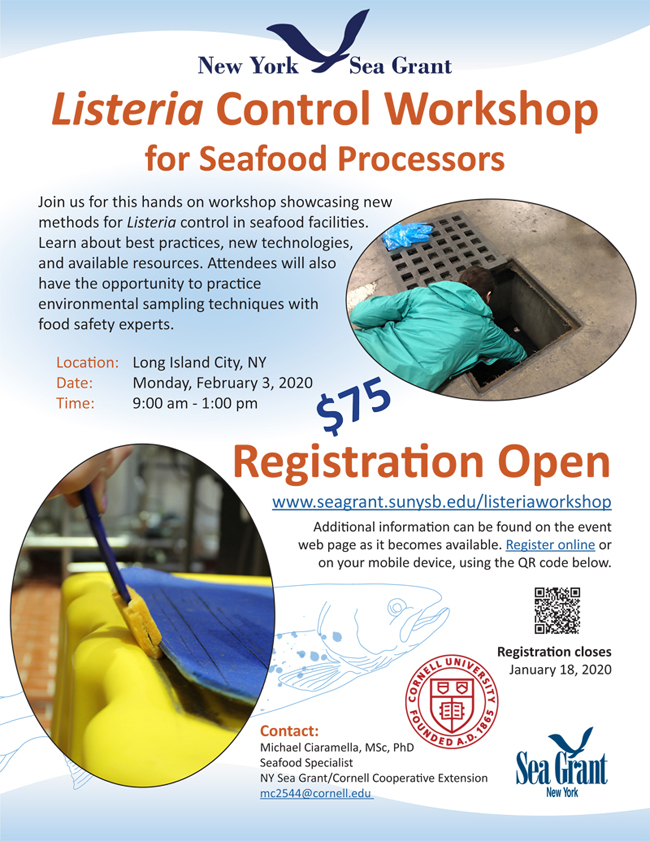 Join New York Sea Grant for this hands on workshop showcasing new methods for Listeria control in seafood facilities.