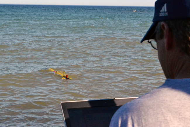 The AUV collected data off Sodus Point Wednesday (May 15) and is scheduled for launch from Rochester and Oak Orchard later this week.