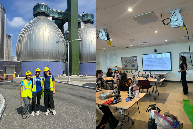 NYSG's Catherine Prunella (at far right), Genesis Dacosta (middle), and fellow 2025 CEI fellow Janice Yohannan (at far left) at the Newtown Creek Wastewater Treatment Facility in Brooklyn, NY. Genesis Dacosta explored solutions to microplastic pollution in fashion. She helped run workshops with Genspace and Hudson River Park and drafted a website to engage New Yorkers in environmental sustainability.