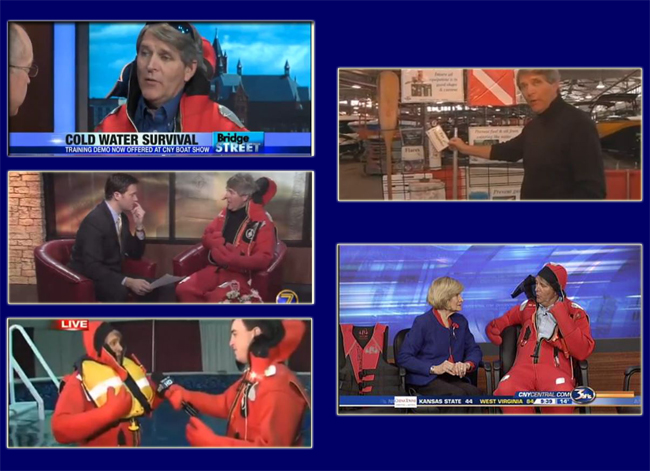 "It's important that we show folks what some of the different options are – survival suit, float suit, float tote – and being in the water really shows how each one works," said White. "What we're finding is that people are listening about protecting themselves and their pets, and more of the dealer exhibits at the show are offering life jackets for sale with a number of vessels sporting stuffed canines wearing life jackets."