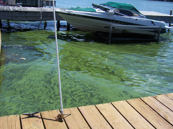 Why are we seeing more HABs in our waters? "One reason is due to heavy nutrient input from watersheds and climate changes," said NYSG Fisheries Specialist Dave MacNeill, who is based at the State University of New York at Oswego. HABs occur when populations of certain noxious blue-green algae (classified as cyanobacteria) produce toxins in embayments and nearshore areas. The toxins cause human illness from direct contact or ingestion of lake water and kill fish and wildlife.