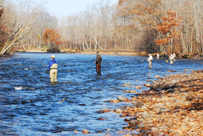 Fishers on the Salmon River, a tributary to Lake Ontario. Photo: David Chanatry, NYD Reporting Project