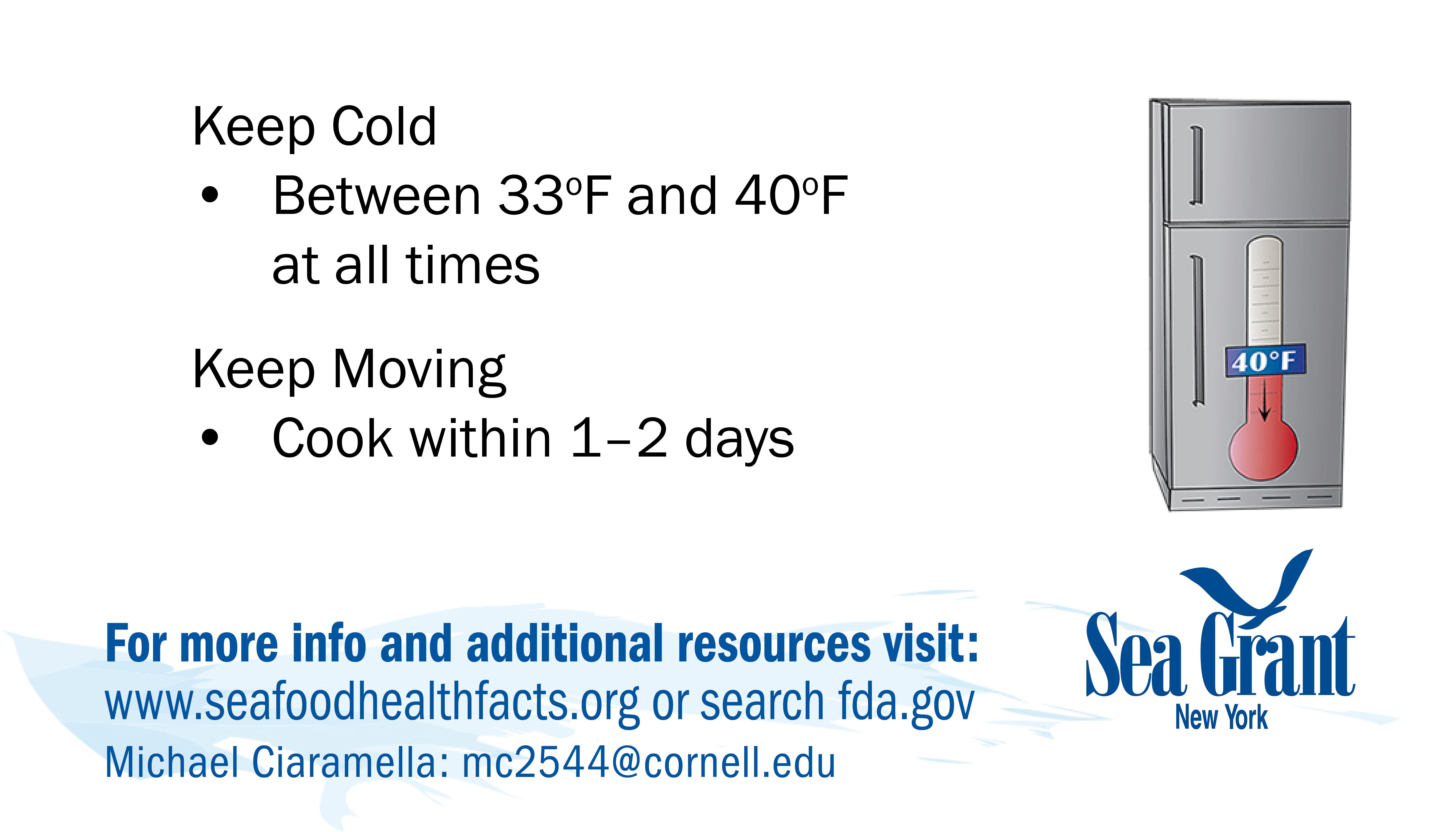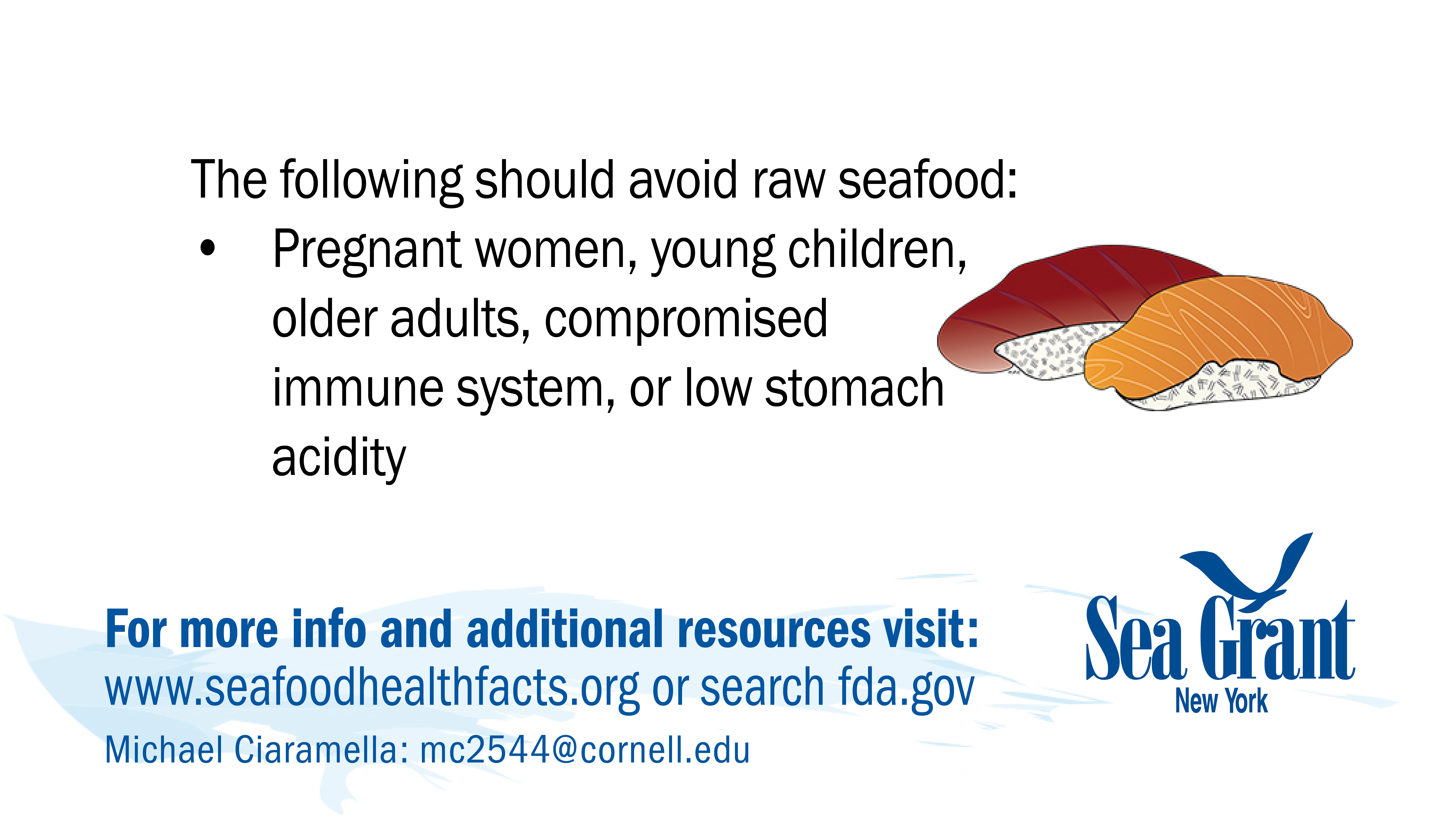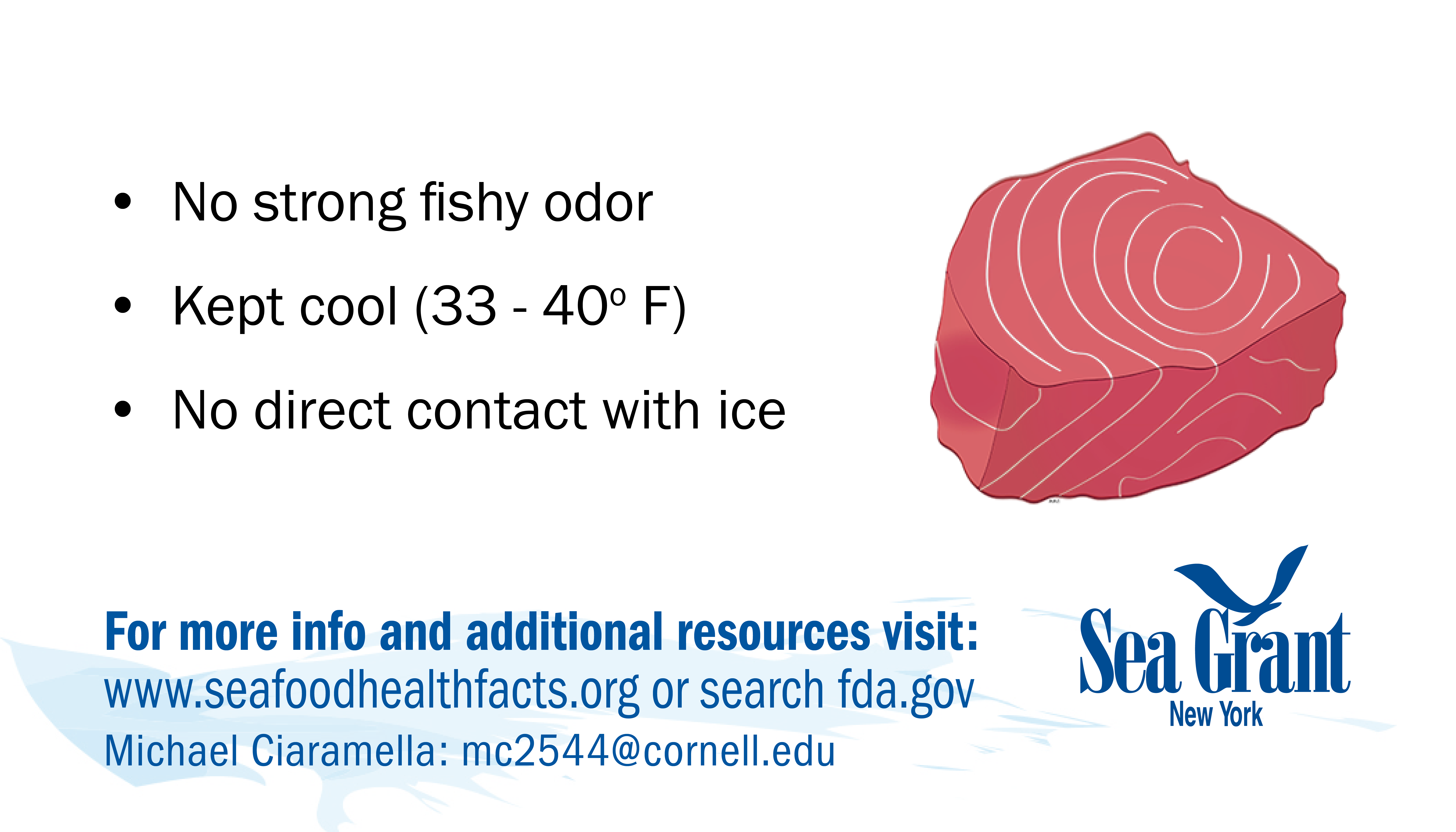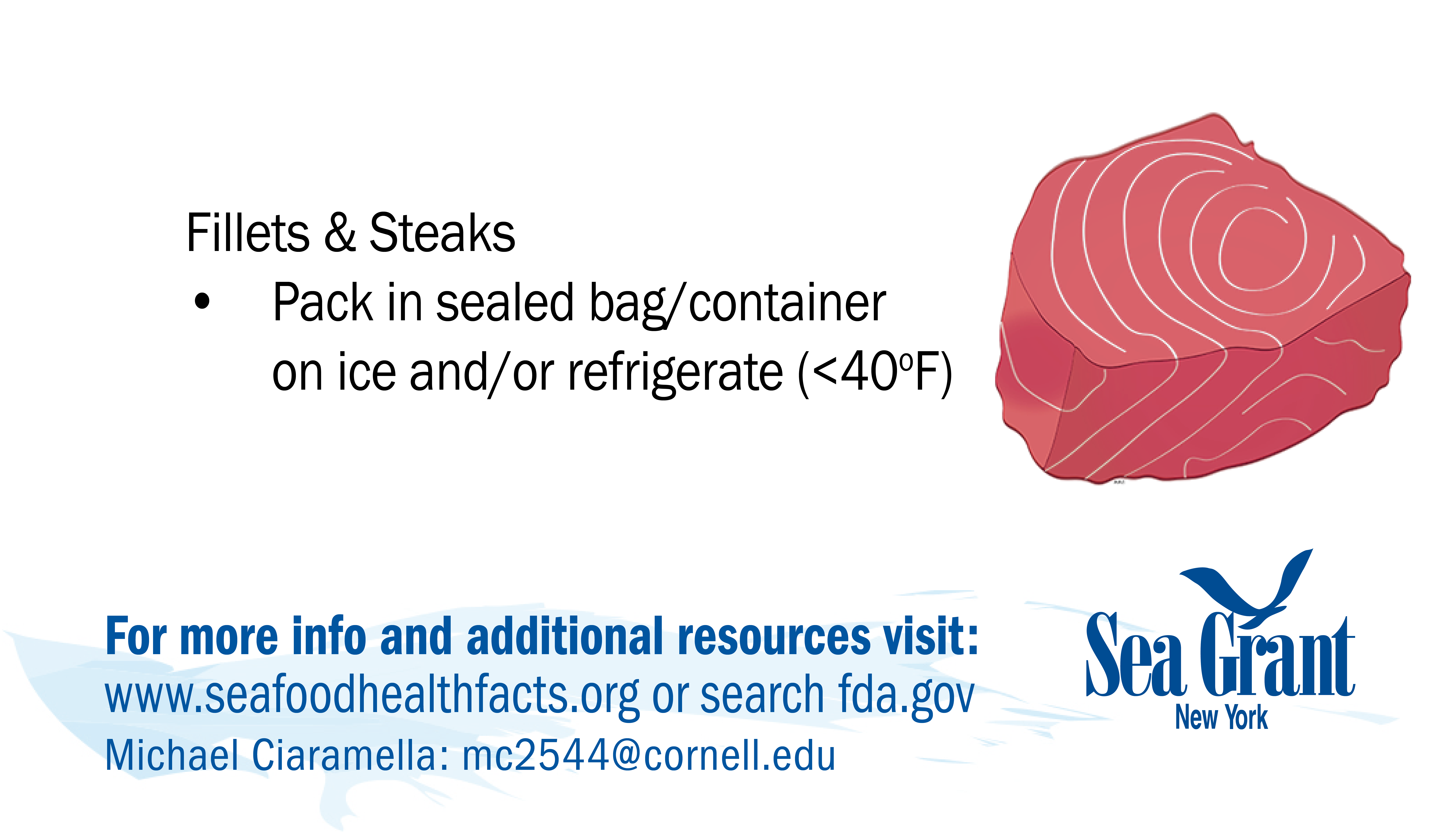 If you have problems downloading any cards or would like them in a different format for use please contact NY Sea Grant's Seafood Specialist: Michael Ciaramella, E: mc2544@cornell.edu, P: (631) 632-8730.