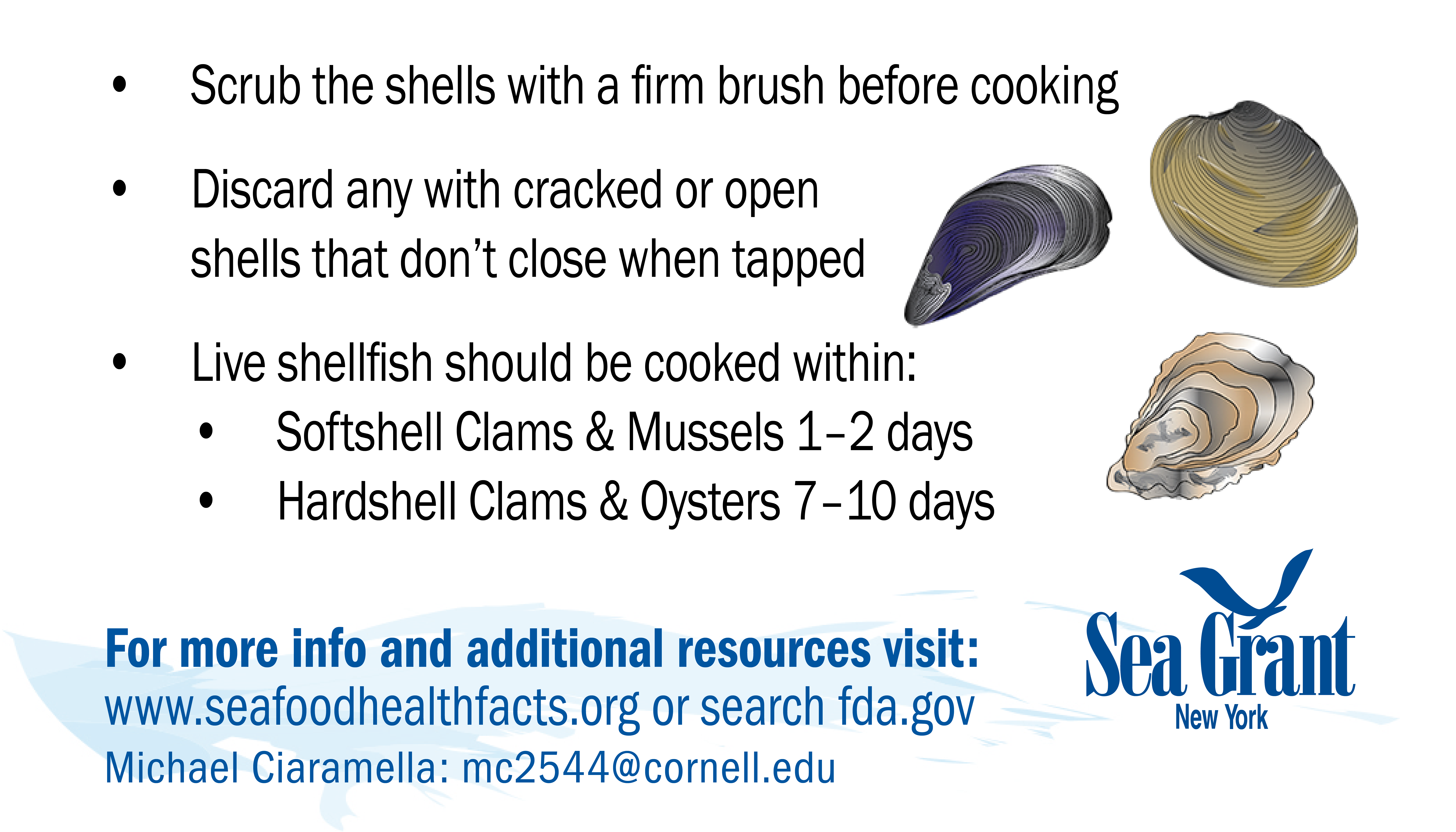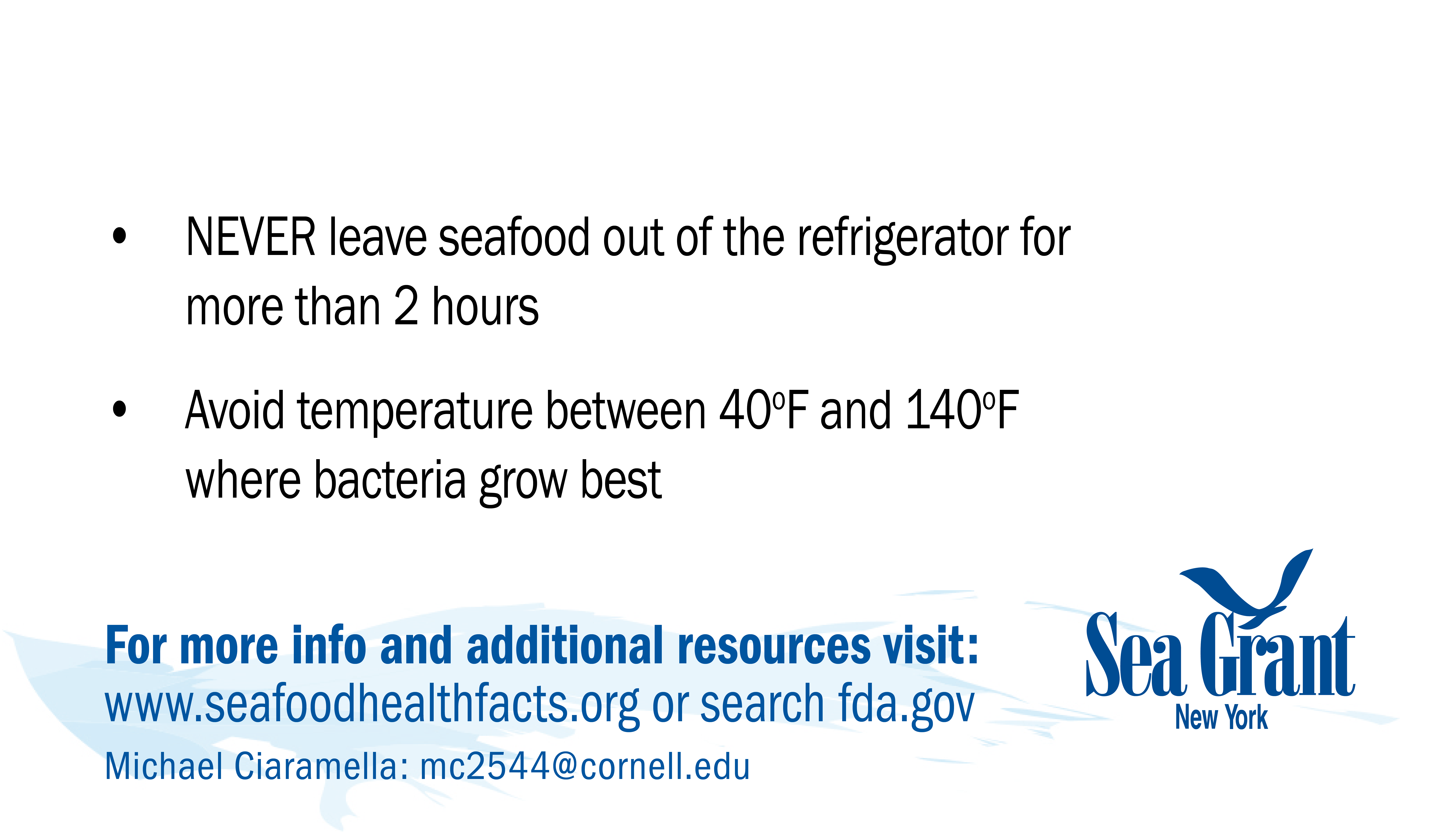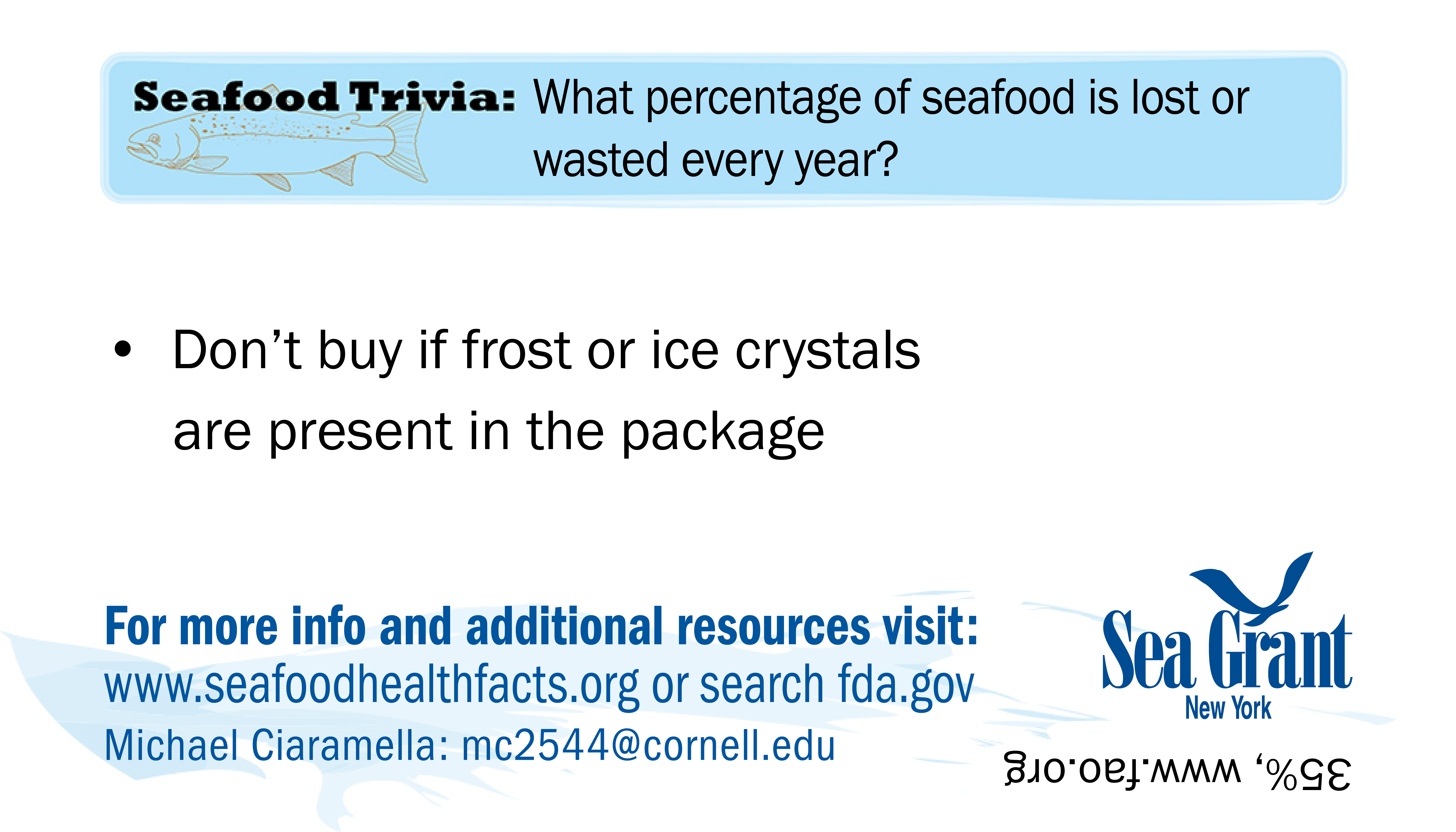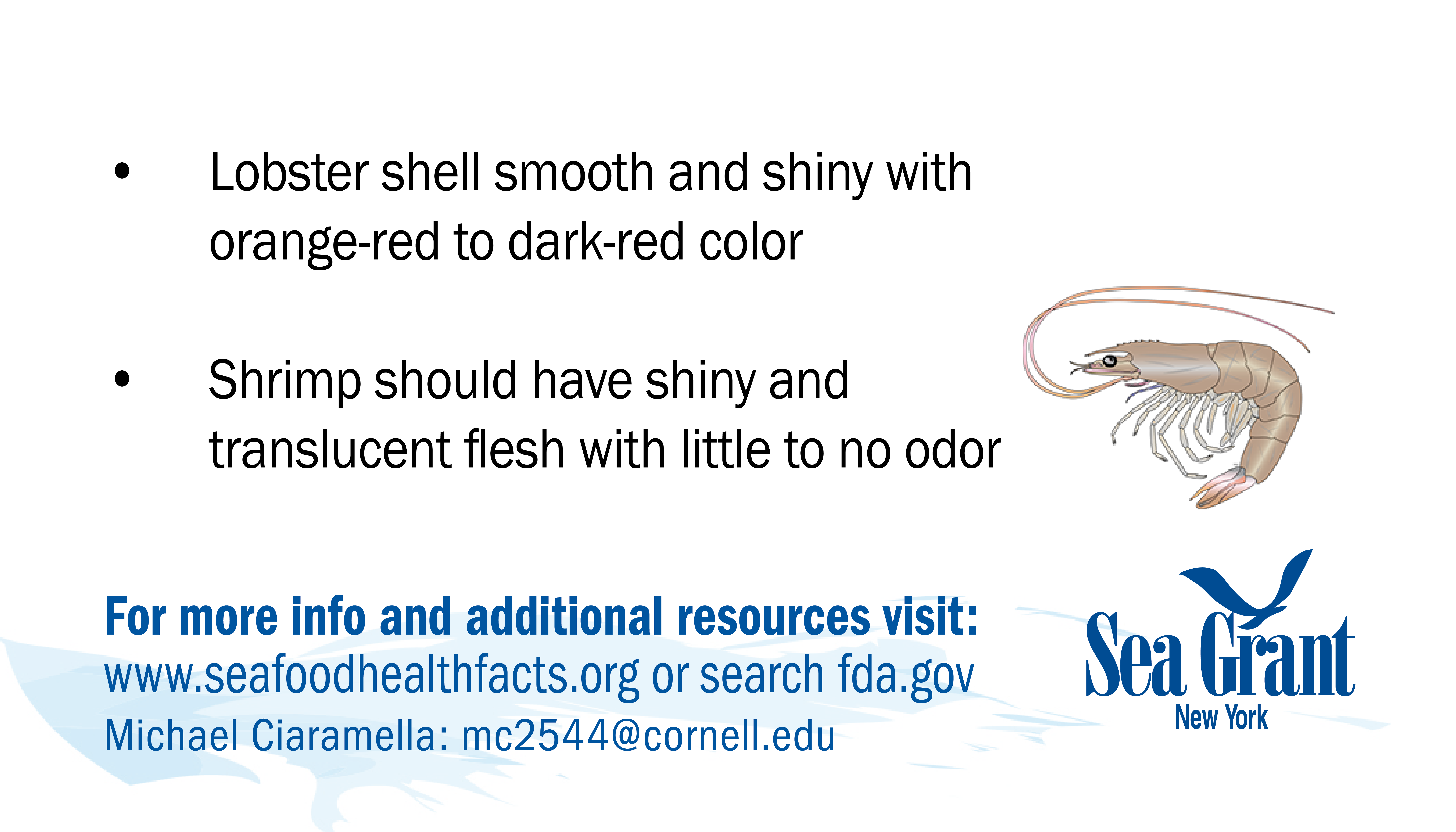 If you have problems downloading any cards or would like them in a different format for use please contact NY Sea Grant's Seafood Specialist: Michael Ciaramella, E: mc2544@cornell.edu, P: (631) 632-8730.