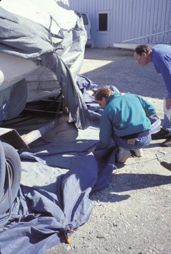 - Care should be taken when blasting boats that have damaged or