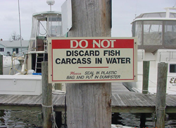 of fish waste in the marina basin. Post signs displaying the rules.