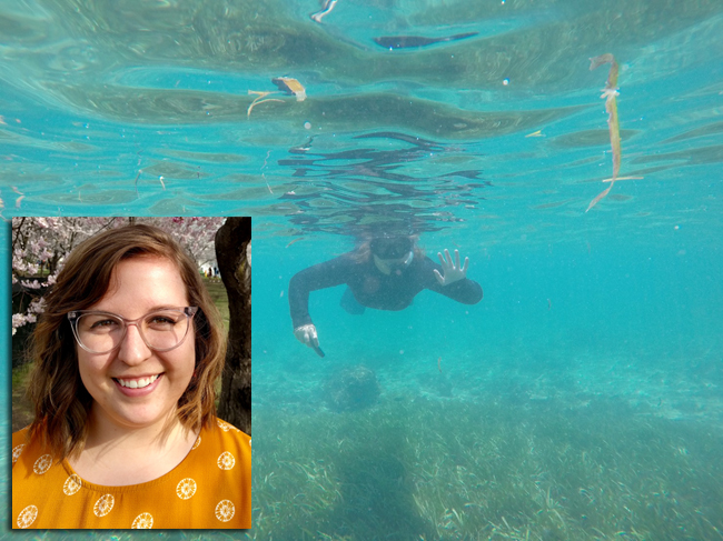 Naomi, pictured seagrass snorkeling in Okinawa Japan, is a graduate student in biology at Brooklyn College and the Graduate Center, City University of New York. Credits: May Roberts; Naomi Lewandowski.