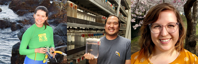 As announced last fall, New York Sea Grant currently has three Knauss fellows: (above, l-r) Celina Scott-Buechler, Irvin Huang and Naomi Lewandowski.