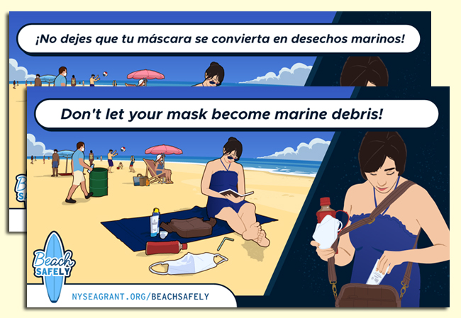 When you remove your mask while at the beach, be sure to keep an eye that it doesn’t blow away and land in the ocean. Make sure you take everything that you brought and dispose of your trash in appropriate receptacles. Image credit: Joel Davenport | New York & New Jersey Sea Grant Programs
