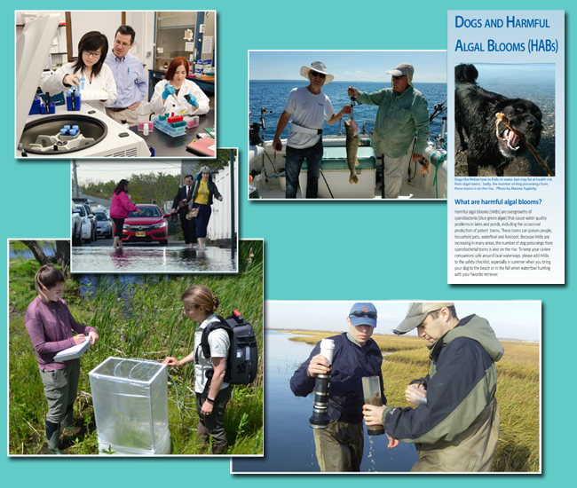 • When it was discovered that blue-green algae toxins can cause illness and even death in pets, a collaboration between research and extension yielded a NYSG publication, Dogs and Harmful Algal Blooms. It became NYSG’s most popular brochure, being picked up by NOAA, other Sea Grant programs and numerous nongovernmental organizations.