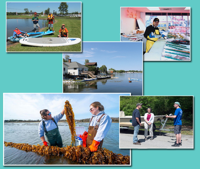• Aquaculture, the cultivation of finfish, shellfish, and aquatic plants, is an important and growing industry in NY. Aquaculture creates jobs and revenue for NY, which has a large market for aquacultured products. Sea Grant coordinated a series of “Meet Your Oyster Farmer” events which highlighted Long Island’s oyster industry. Sea Grant has been working to assist aquaculturists in the cultivation of sugar kelp, a native species and viable marketable product that can be cultivated in the winter months.