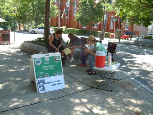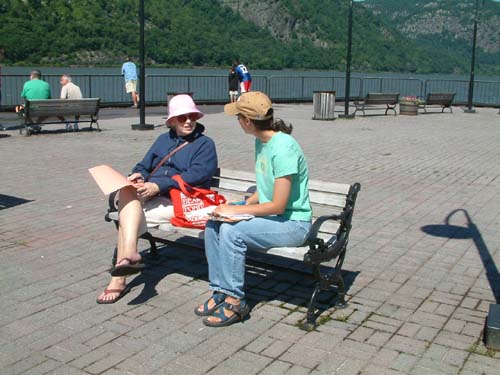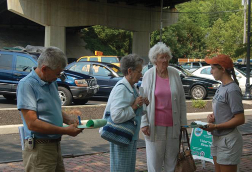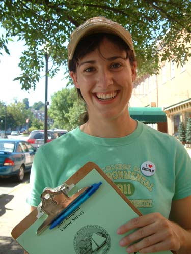 Laura Sullivan (far right), a SUNY CESF graduate student on this project, helped visitors in Kingston and the other towns to fill out the survey. She says, “Resident and visitor survey responses emphasized the attraction of scenic vistas and public access to the Hudson and its tributaries.” Of the overall experience, she adds, “Working on this project was my first real exposure to this unique region. I enjoyed learning about the natural, social, and historic attributes of the HRV from dynamic residents who are working towards a vibrant, sustainable future for their communities.” Photo courtesy of Laura Sullivan