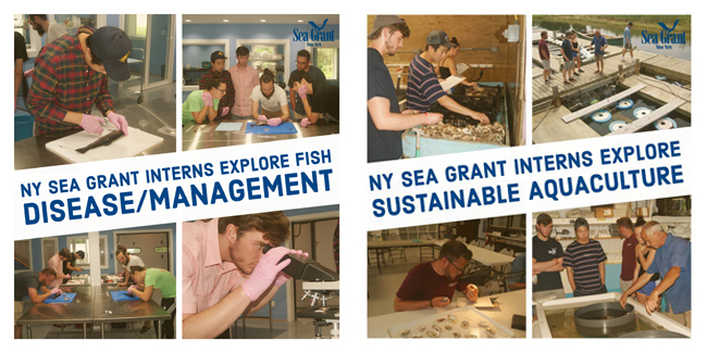 Other topics the interns addressed during their summer 2018 internship: (at left) fish disease management and (at right) sustainable aquaculture.