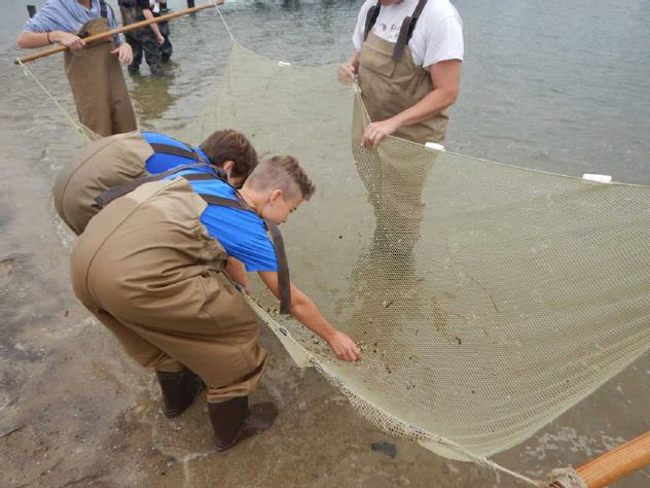 Middle school students seine for organisms as part of the Long Island Sound Stewards program. Credit: NYSDEC.