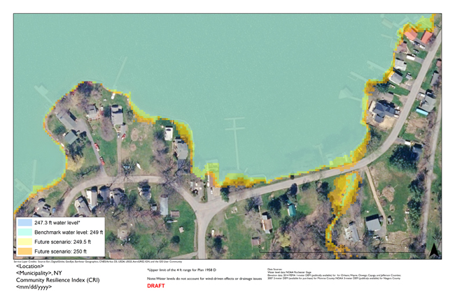 The New York’s Great Lakes Coastal Resilience Index (CRI) is a self-assessment tool developed by New York Sea Grant. To complete the index, community leaders get together and use the tool to guide discussion about their community’s resilience to coastal hazards. The Index provides a simple, inexpensive method for community leaders to perform a self-assessment of their community’s resilience to coastal flooding and weather disasters, identifying weaknesses a community may want to address prior to the next hazard event and guiding community discussion. The Index is not intended for comparison between communities.