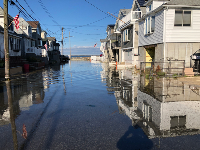 Sunny day tidal flooding in the Jamaica Bay coastal community. Credit: Helen Cheng, NYSG & Science & Resilience Institute at Jamaica Bay