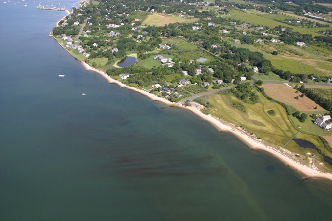 A brown tide bloom in West Neck Bay, Shelter Island Heights. Credit: Peconic Estuary Partnership.