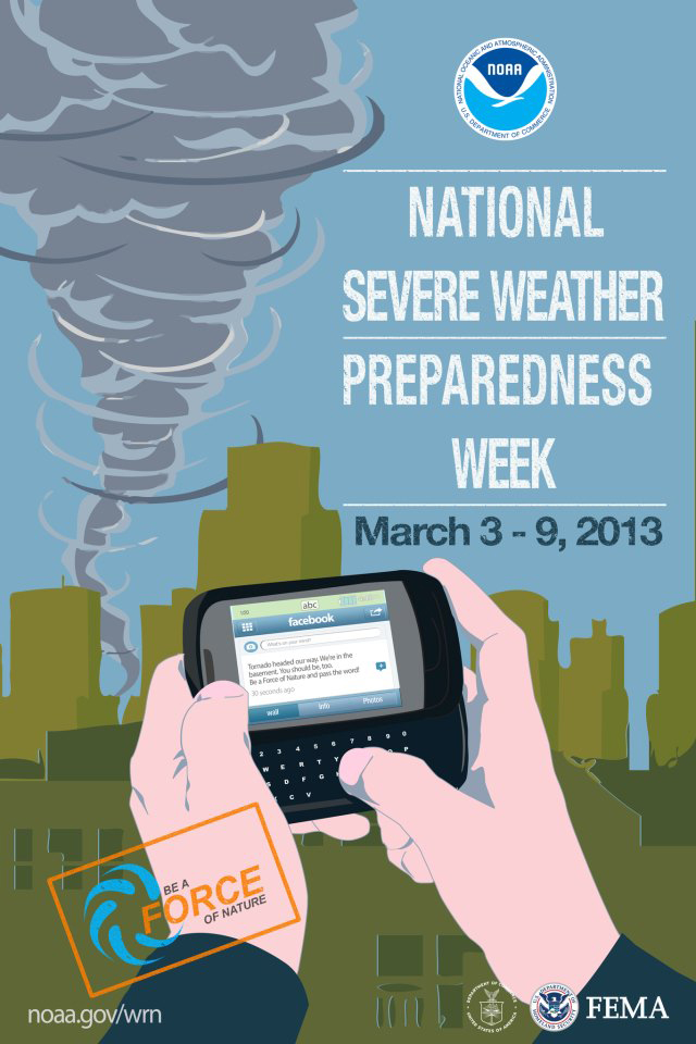 New York, NY, March 3, 2013 - Are you ready if severe weather strikes? To make certain that you do, the National Oceanic and Atmospheric Administration (NOAA) and the Federal Emergency Management Agency (FEMA) have partnered again this year for "National Severe Weather Preparedness Week," a campaign encouraging people across the country to "Be a Force of Nature" in their communities by preparing for severe weather and encouraging others to do so as well.
