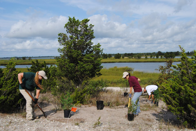 During a beautiful early-September 2012 day at Orient Beach State Park, Stewardship Day volunteers planted more than 30 native shrub by the water. These shrubs will provide erosion control for the area and habitat for wildlife. Photo courtesy of Long Island Sound Study.