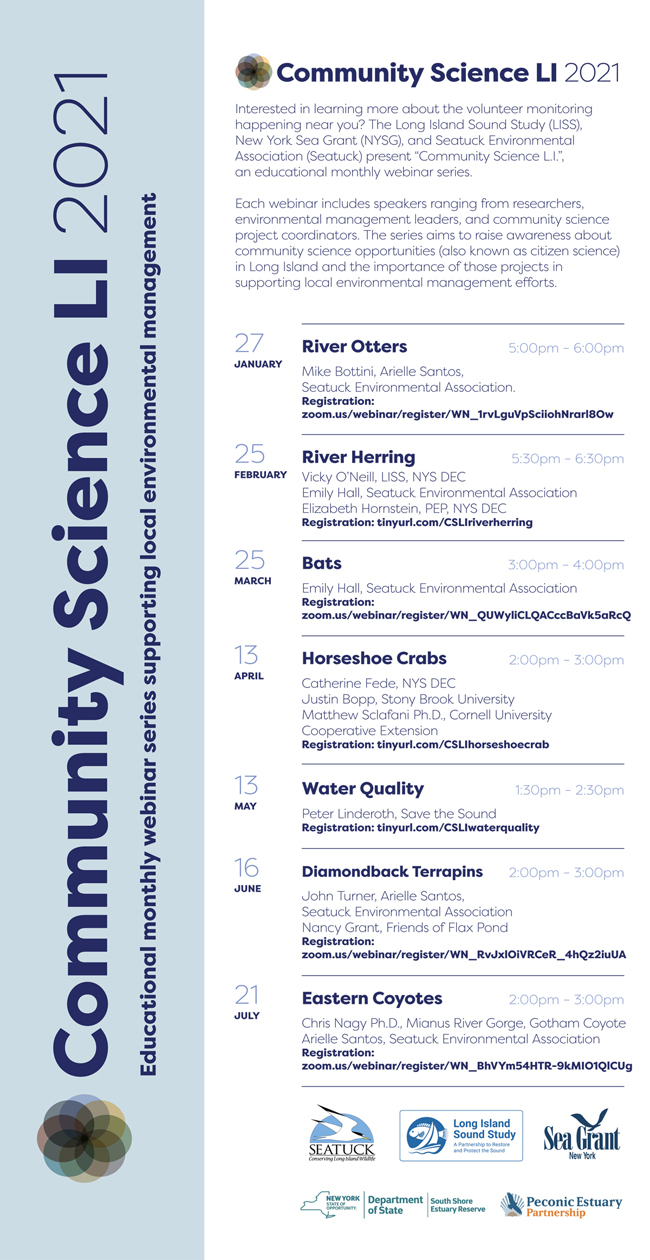 For more information on future webinars, the full event schedule, and registration information, visit seatuck.org/community-science-webinars.