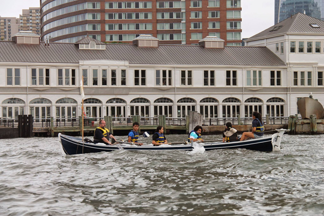 A group of Village Community Boathouse adult volunteers and Stuyvesant High School Students and Alumnae rowed 3 Whitehall Gigs from Pier 40 to Governors Island to participate in the Metropolitan Waterfront Alliance’s (MWA) City of Water Day Festival.
