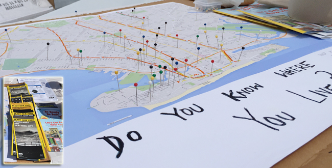 As pictured above, Cheng's mapping activity was an informal lesson on evacuation zones and resilience, and (as seen in inset photo) available resources from the NYC Office of Emergency Management in New York City (NYC OEM).