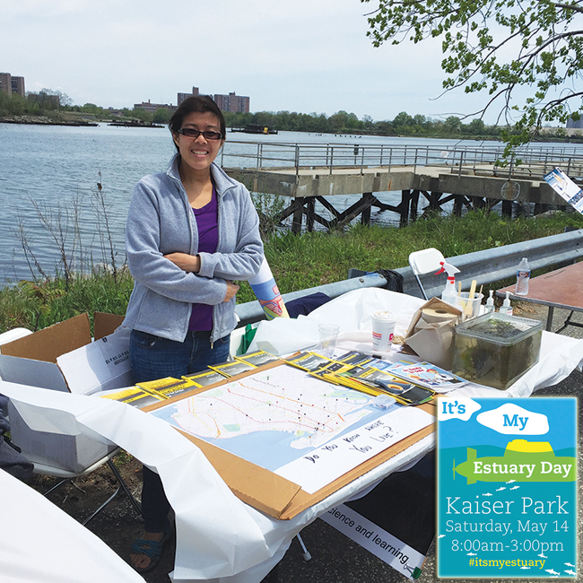 NYSG's Helen Cheng shared a table at "It's My Estuary" Day with Ph .D. Candidate of CUNY Brooklyn College Annesia Lamb (pictured above), who offered a display and activity on local algae species.