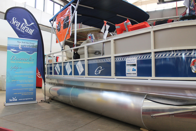 The 2017 New York Sea Grant Discover Clean and Safe Boating educational vessel is an 18-foot pontoon boat made in NY by Marathon Boat Group. Photo: Brian P. Whattam
