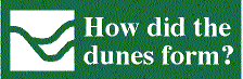 Dune Fun was designed to teach students and adults about dune erosion and creation processes. This section of this dune web site is highly interactive and has many animated illustrations. Because of this, opening these files may be a very slow process if you are using a slow modem. To speed up the interactive process, download the Dune Fun files to your computer and then run them directly from your hard drive. Some computers may also not be able to read the animated files.