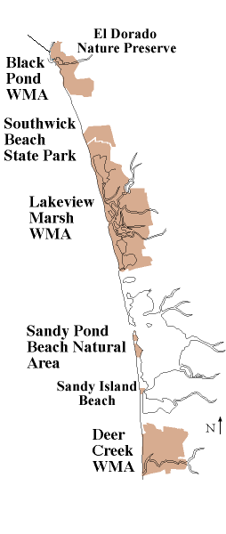 The Eastern Lake Ontario Dune and Wetland Area is comprised of six areas that are open to the public: one state park, one county park, three wildlife management areas (WMAs), and one property owned by The Nature Conservancy. Click on any area or its name for more information. A PDF version of this information is also available. If you are unable to read pdf files, click on the Adobe Acrobat logo, and download Adobe Acrobat Reader. |
