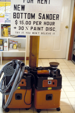 signs indicating the availability of the dustless or vacuum sanders.