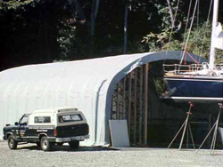 water, use tarps and sheeting installed between the vessel being